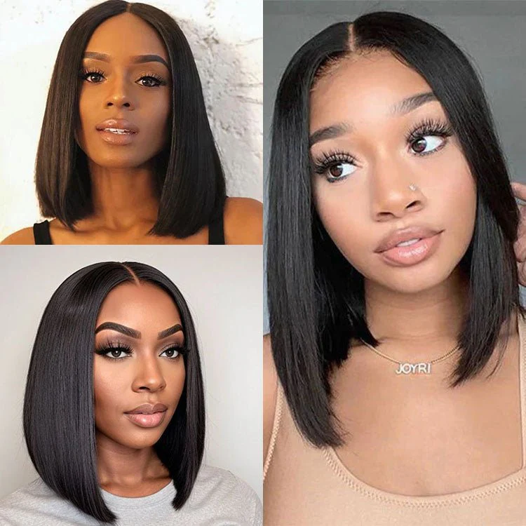 Ear to Ear Lace Frontal Bob Wig Straight Human Hair Natural Hairline Pre-Pucked Middle Part 13x1 Lace Wig Peruvian Hair