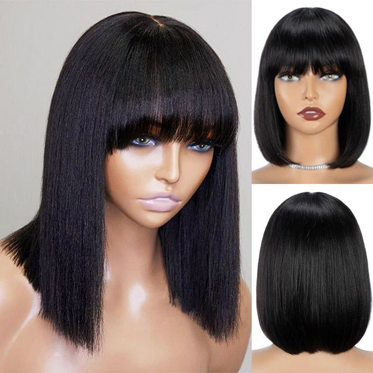 Straight Fringe Bob Wig With Bangs Brazilian Short Bob Human Hair Wigs For Women Machine Made Wig With Bangs Remy Hair Full Wig Natural Color